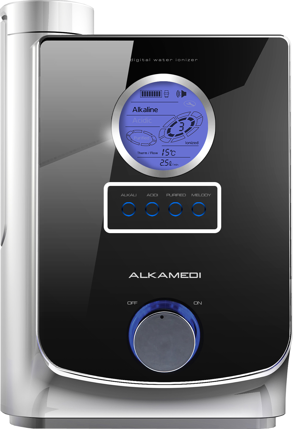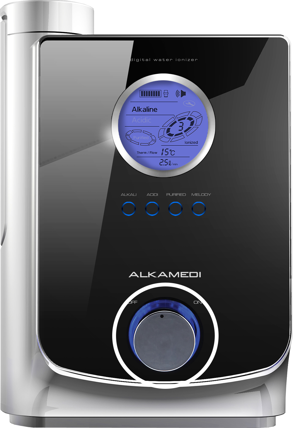 Alkamedi water ionizer separates source water into alkaline and acidic streams. The alkaline water is dispensed through the main outlet for your hydration needs, while the acidic water exits through the drainage outlet. Instead of discarding it, utilize the acidic water for its various applications. Conversely, when you need acidic water, the alkaline water can be collected from the drainage outlet.